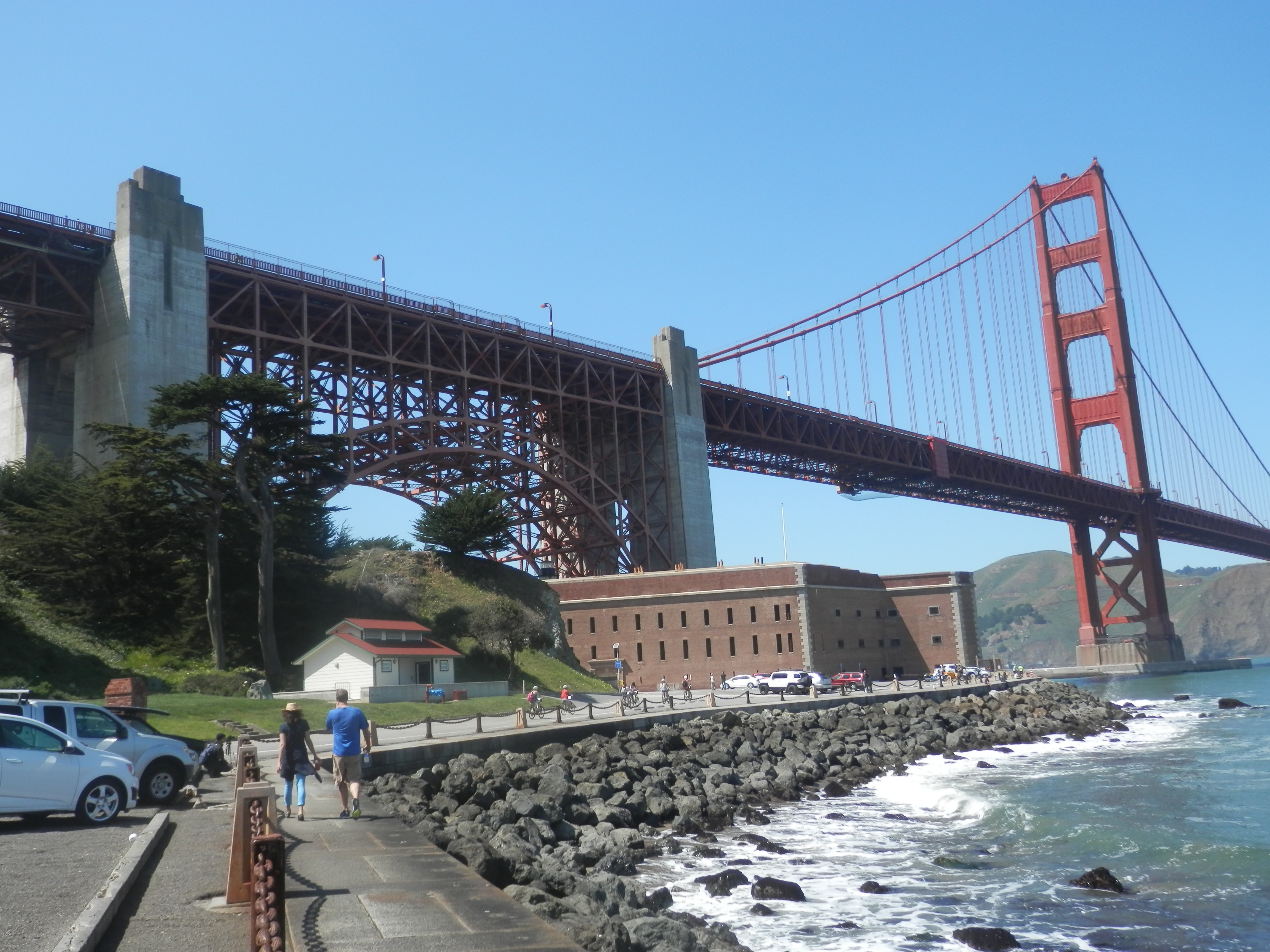 • If time permits, take a side detour to the former army post of the Presidio with its fine, preserved military buildings, many converted for modern use such as the Walt Disney Family Museum, and hikes through the woods with yet more stunning views of Karl the Fog lurking over the bridge.